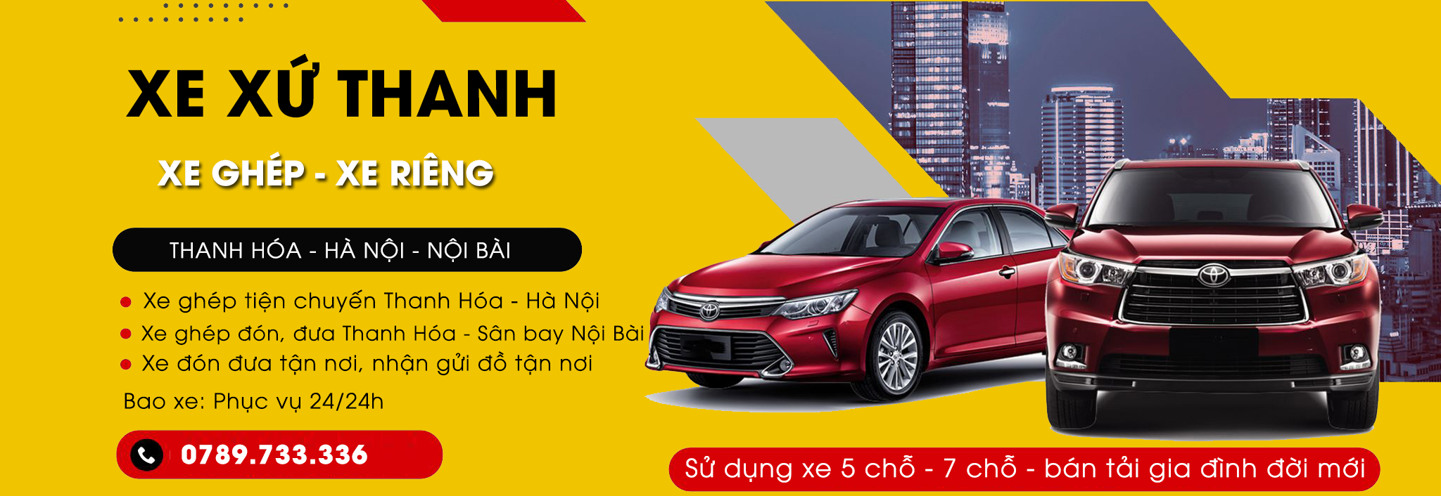 Xe ghép – Xe riêng Thanh Hóa ↔ Hà Nội ↔ Nội Bài